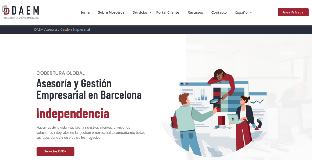 DAEM es una gestoría y asesoría con oficinas en Barcelona y Sabadell que apuesta por un acompañamiento cercano, claro y constante para empresas, autónomos y particulares. Su equipo combina años de experiencia con una atención muy personalizada, tanto para quienes buscan una gestoría en Sabadell como para quienes necesitan un despacho de referencia en Barcelona.